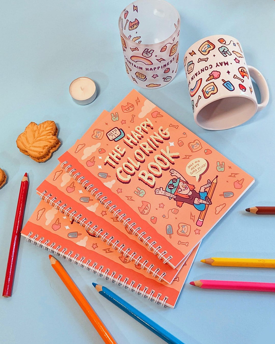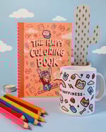 Il coloring book più felice di sempre, unito alla sua tazza abbinata per fare il pieno di vibrazioni positive!